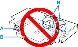 Bakım kartuşunun terminaline ( A ) veya açıklığına ( B ) dokunmayın.