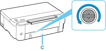 3-) Yazıcınızın arkasındaki bakım kapağındaki üstteki görselde C ile gösterilen vidayı sökün.